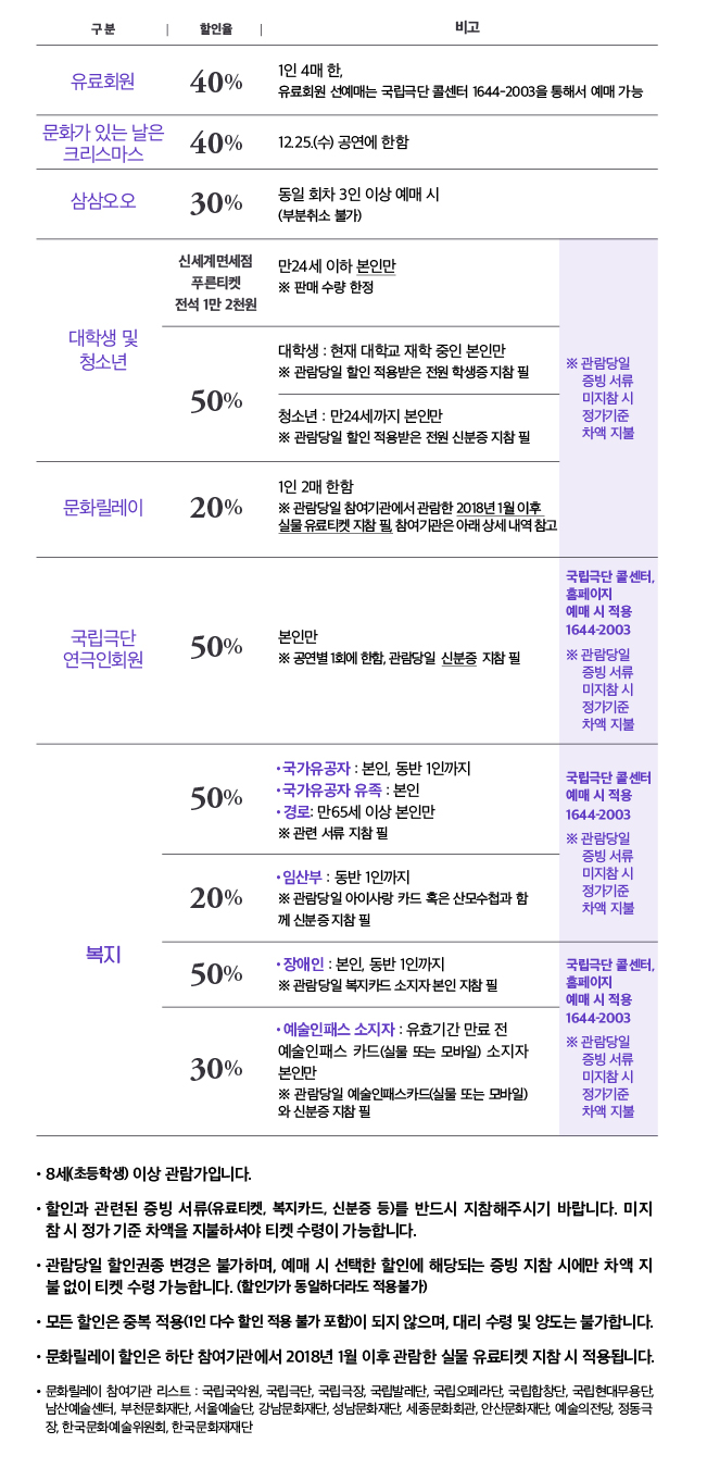 국립극단 콜센터, 홈페이지 예매 시 적용 1644-2003