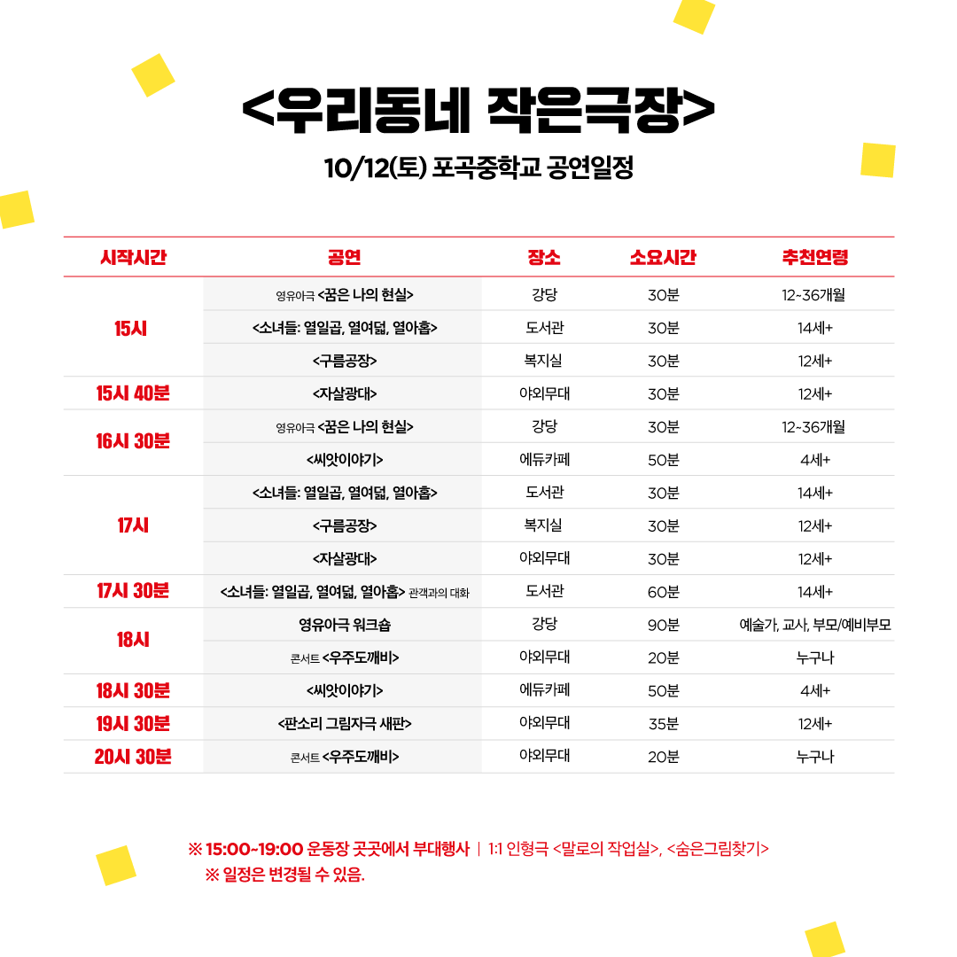 [우리동네 작은극장] 전체 일정