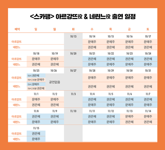 ※ 단, 10.25.(일) 15시, 19시30분 2회 공연 / 10.26.(월) 공연없음 -