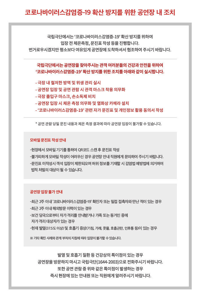 코로나바이러스감염증-19 확산 방지를 위한 공연장 내 조치