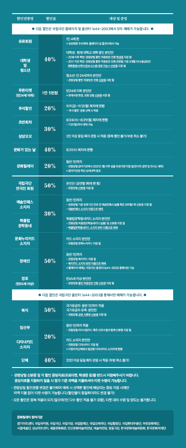 ※ 9.10.(토) 추석 당일 공연 없음