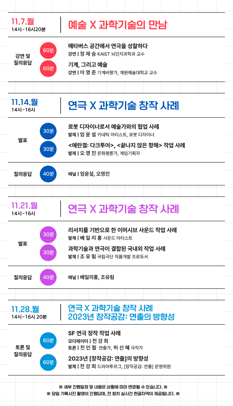 11.14.(월) 14시-16시 [연극 X 과학기술 창작 사례] 발표 및 질의응답
