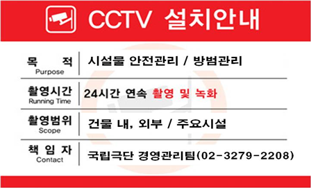 본 지침은 극단 내․외부에 설치된 CCTV의 설치․운영에 적용한다.